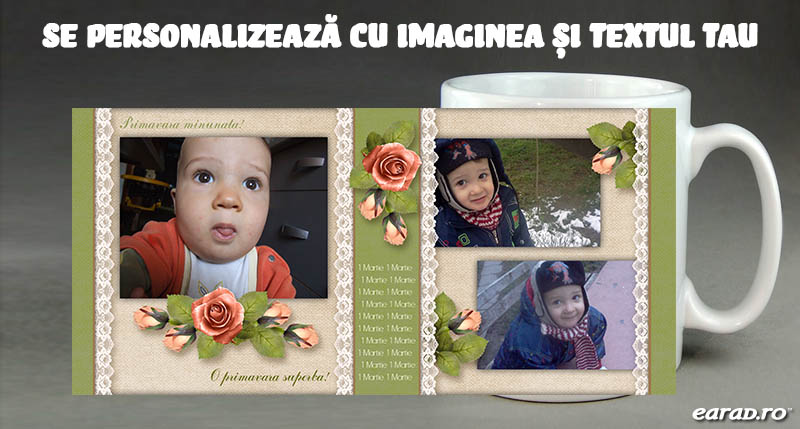Pentru cani personalizate: pozele sau textul dorit pe cana se trimite pe email la stampile@earad.ro