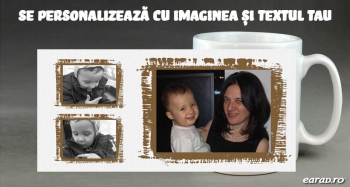 Cana personalizata cu pozele dumneavoastra. Personalizarea canii se face prin transfer termic.  Cana personalizata este de calitate superioara din ceramica; poate fi exploatata in regim de vesela normala, rezistenta la spalat.  Inaltimea canii este de 9.5 cm iar diametrul interior de 8 cm. Pretul include TVA, cana si personalizarea.